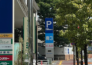 ご来院の方には1時間無料駐車券をお渡しいたしますので、南3駐車場のほか、他の「つくば都市交通センター駐車場」でもご利用いただけます。
